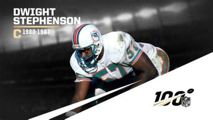 Dwight Eugene Stephenson (born November 20, 1957, in Murfreesboro, North Carolina) is a former American football offensive lineman and a member of the Pro Football Hall of Fame's class of 1998. He played for the Miami Dolphins from 1980 until 1987, when his left knee sustained an injury in a play involving New York Jets Marty Lyons and Joe Klecko.Stephenson was an All-American at the University of Alabama, under coach Bear Bryant. Bryant called Stephenson the best player he ever coached, regardless of position. He was drafted by Don Shula and the Dolphins in the second round of the 1980 draft. The 6'2", 255 pound center would eventually become regarded by many as one of the best centers of all time, but was used on special teams only until late in the 1981 season, when Mark Dennard was injured.With the exceptionally explosive Stephenson as offensive captain, the Dolphins offensive line gave up the least sacks in the National Football League for a record 6 straight seasons, from 1982–1987, which doubled the length of the previous record. After he left, the Dolphins' line would continue to protect the pocket superbly, extending the record to 9 straight seasons.Stephenson was voted as an All-Pro five consecutive times from 1983 to 1987. He was selected to play on five Pro Bowl squads over the same span. He started at center in the AFC Championship Game three times, in 1982, 1984, and 1985. He was the starting center in the last two Dolphin Super Bowl appearances: Super Bowl XIX and Super Bowl XVII. In 1985, Dwight was the recipient of the Walter Payton Man of the Year Award.On December 12, 1994 he was added to the The Miami Dolphin Honor Roll.Despite the brevity of his career, in 1999, he was ranked number 84 on The Sporting News' list of the 100 Greatest Football Players. Also, in 1999, he was inducted into the Virginia Sports Hall of Fame, and in 2011 he was inducted into the Hampton Roads Sports Hall of Fame, for his contributions to sports in southeastern Virginia.In 2005 he was named the Walter Camp Man of the Year.His son, Dwight Jr. was a linebacker and defensive lineman at the University of Notre Dame from 2003 to 2007.